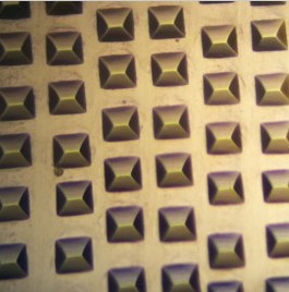 導光板注塑模具加工,深度4.9um | 撞點加激光補點,激光深度 0.3um | 錐形結(jié)構(gòu)撞點 | 導光板注塑模具加工,深度3.6um |